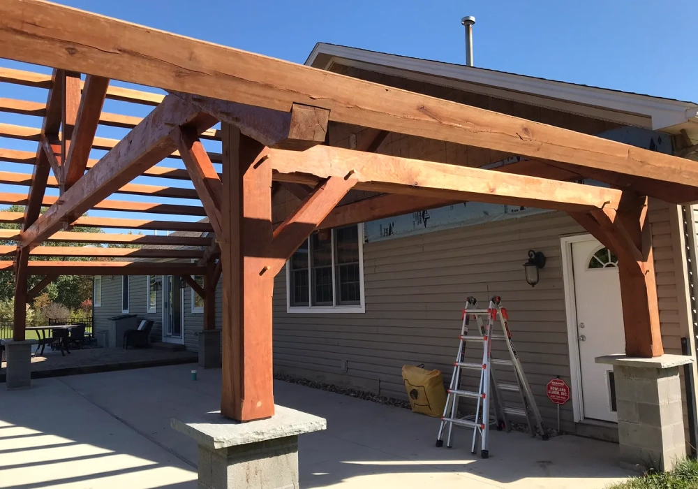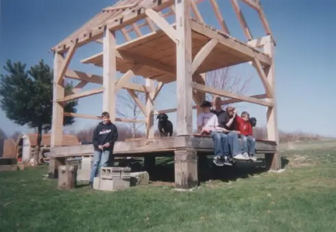 Timber Frame pavilion – Vienna, Ohio – 20’x 36′, kingpost trussed, Cherry timbers.
