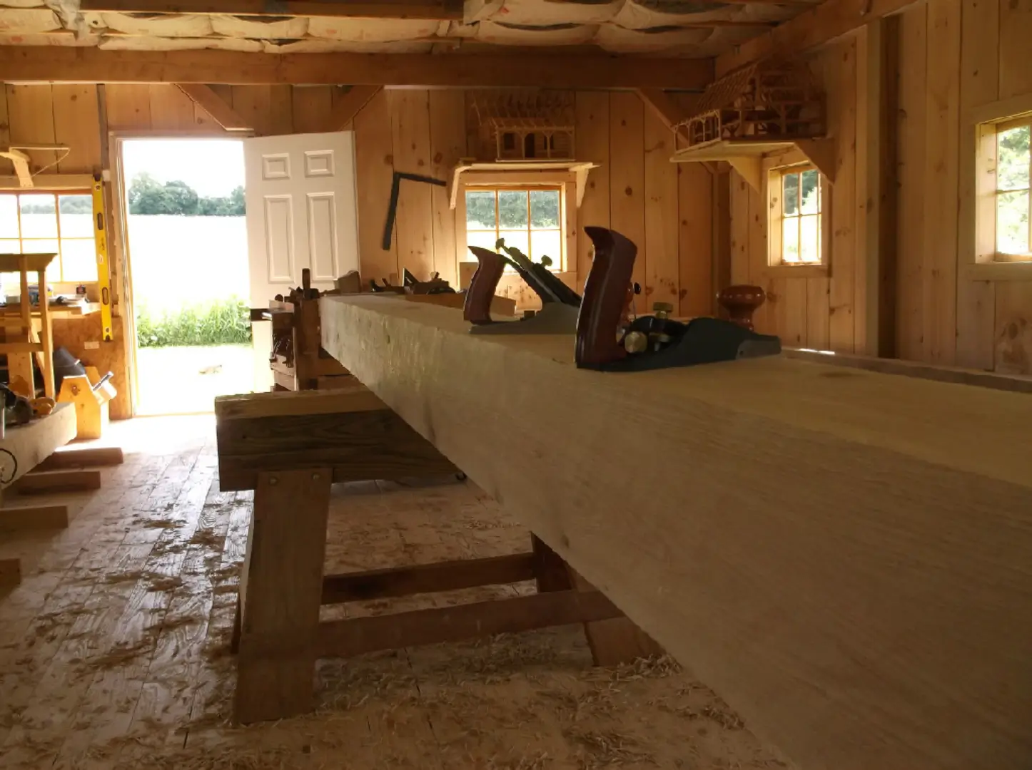 This stout frame was crafted entirely in hardwood, with hickory, beech, hard maple & white oak being the primary species. Its footprint is small enough to fit in most backyards without being to obtrusive, and this frame would function nicely as a wood-working shop, an art studio, a garden shed, or even a rock-solid playhouse/clubhouse for the kids!